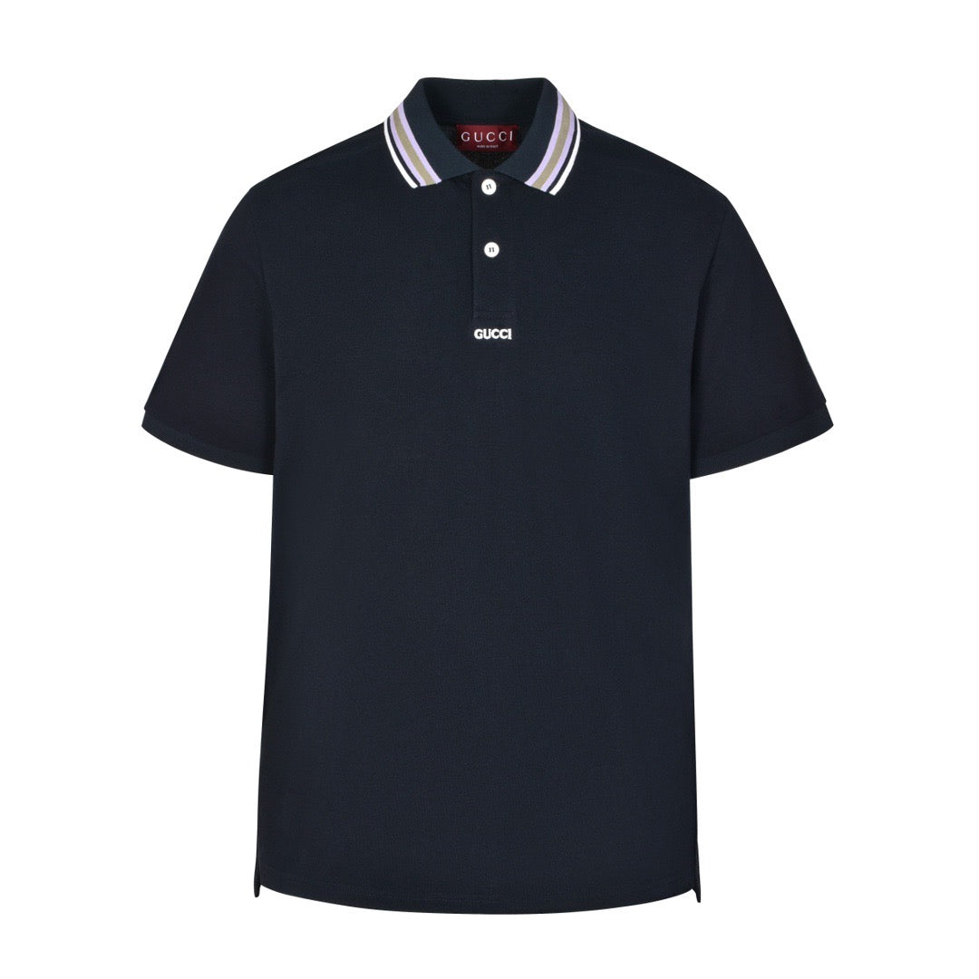 Embroidered lettering logo lapel polo