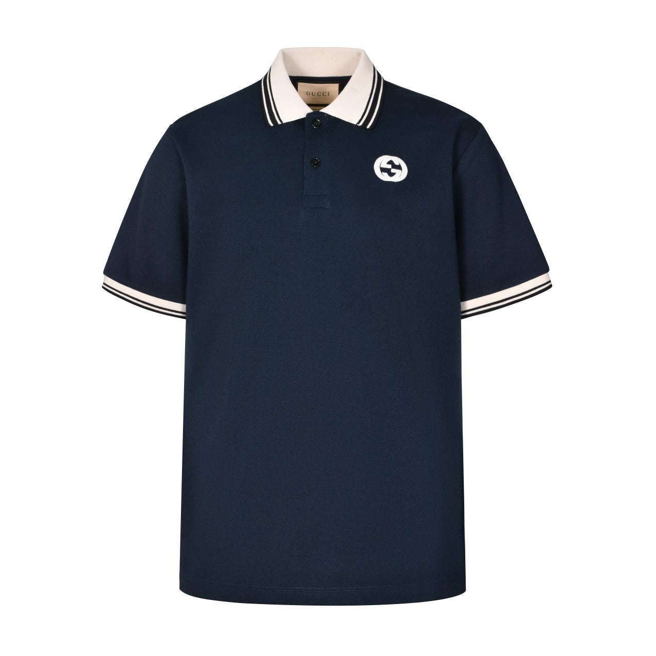 Buttoned short sleeves with logo lapel