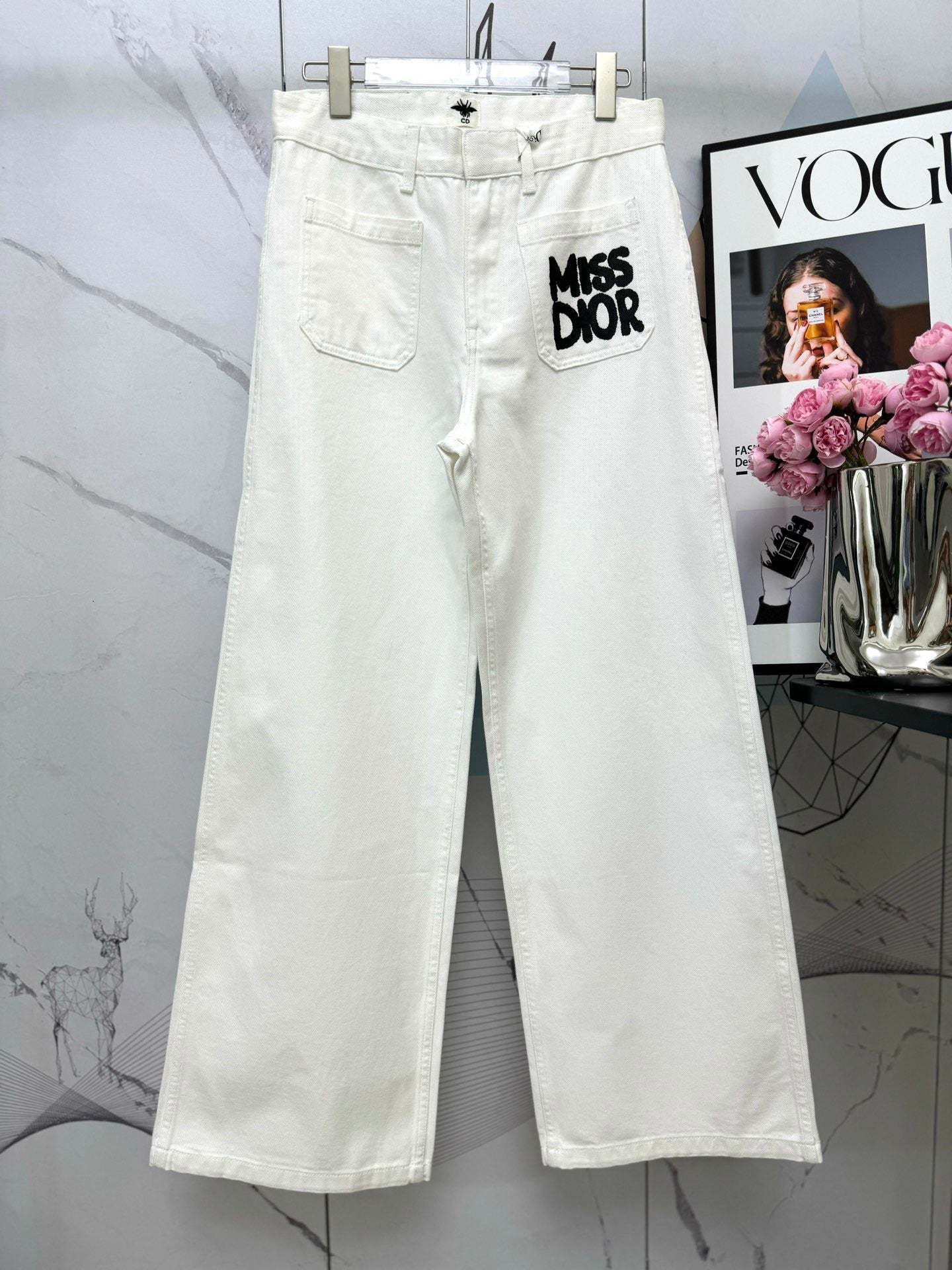 Front double pocket printed letter jeans