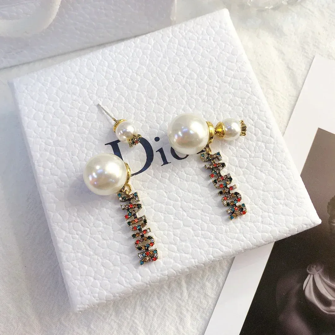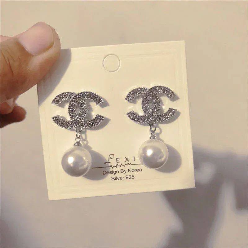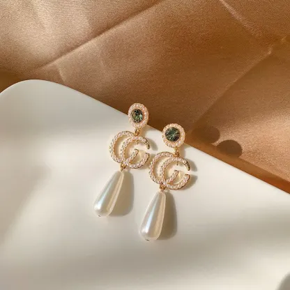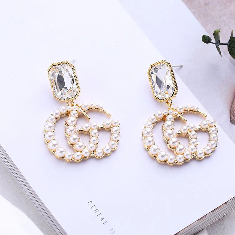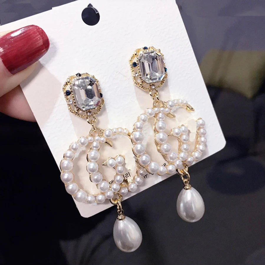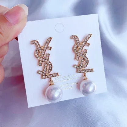 Ladies New Rhinestone Pearl Earrings