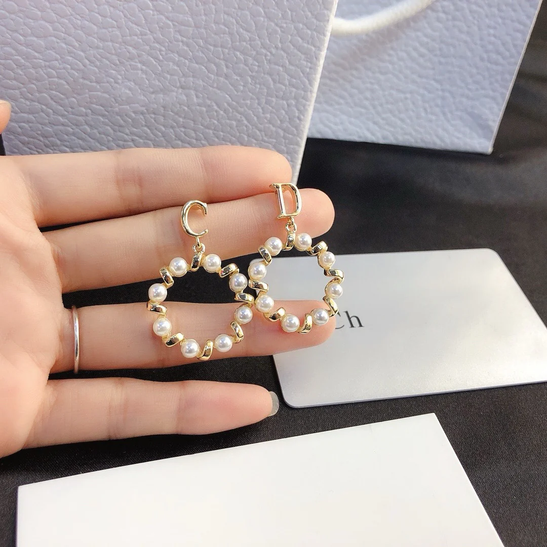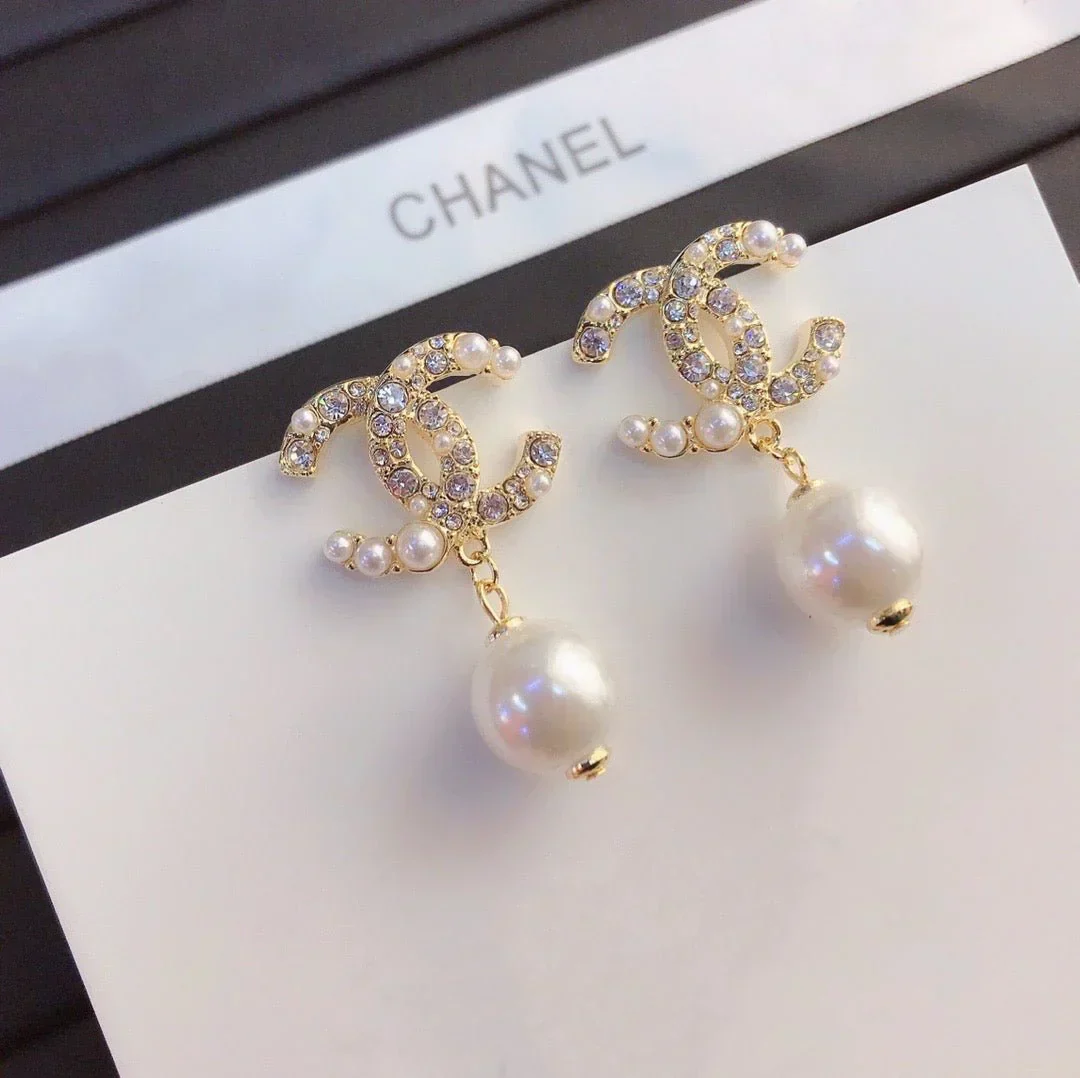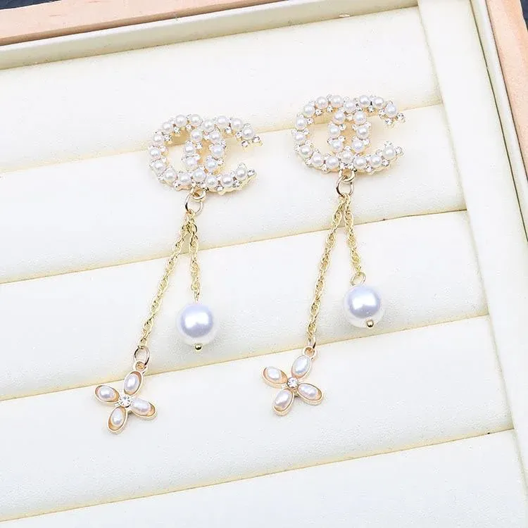 Ladies New Rhinestone Pearl Earrings
